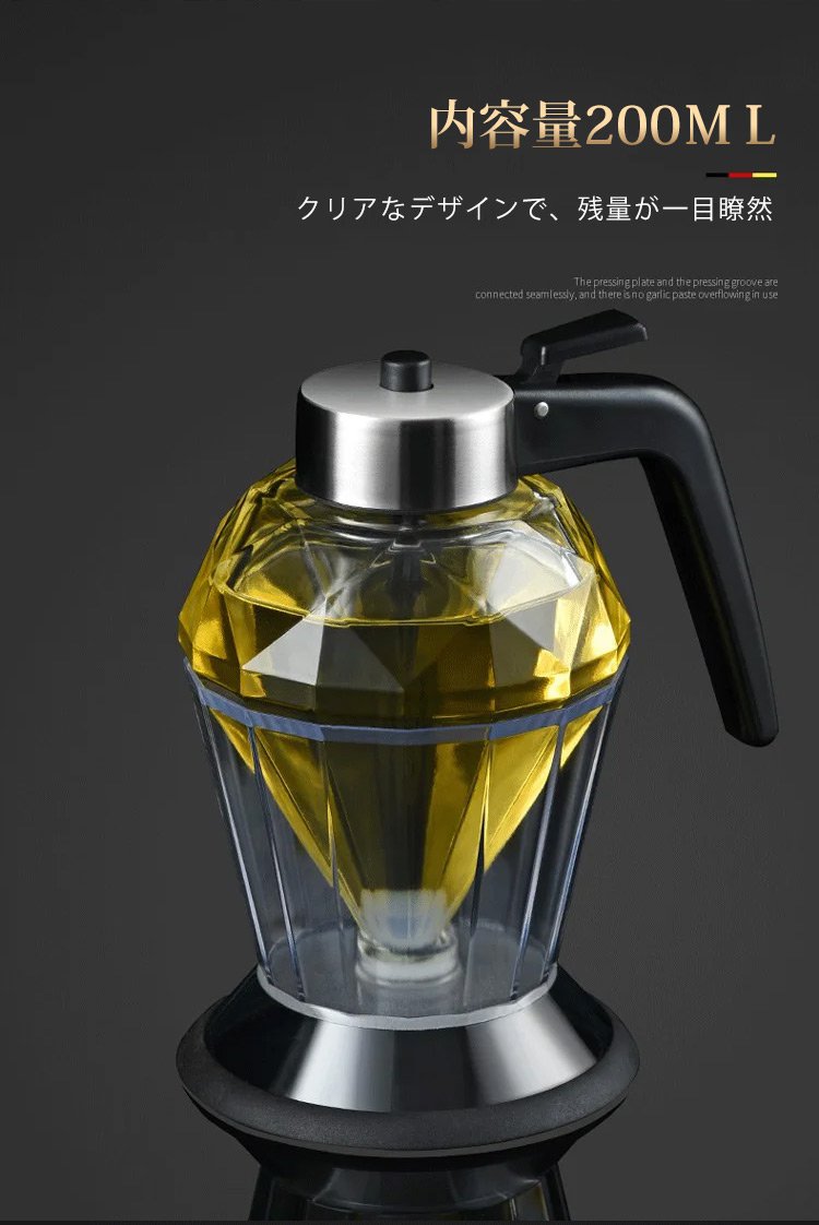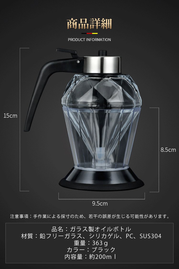 おしゃれなデザインのガラスオイルボトルのアップ写真